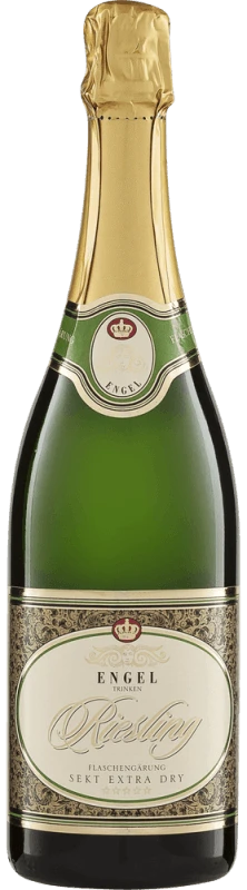 Dieser elegante Schaumwein aus int. Riegelmarke wird vegane aus der Rebsorte Riesling hergestellt. Im Anschluss an die Lese werden die Weintrauben auf schnellstem Wege in die Kellerei gebracht. Hier werden sie selektiert und behutsam aufgebrochen. Nun folgt die Gärung der Grundweine. Nach der Fertigstellung des Weins wird der Engel Rieslingsekt Flaschengärung Extra Dry behutsam harmonisiert.
