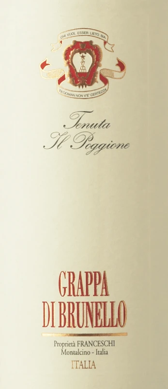 Von Spirituosenproduzent Tenuta Il Poggione aus Italien ergießt sich mit diesem Grappa di Brunello ein reiner Grappa ins blitzblanke Glas und erfreut auf Anhieb den Blick geneigter Spirituosenliebhaber mit strahlender glasklarer Farbe.