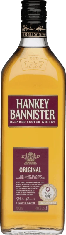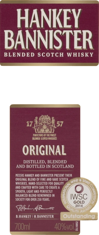 Der erstklassige Original Whisky von Hankey Bannister aus Großbritannien fließt in kräftigem Goldgelb ins blankpolierte Glas und verlockt zum ersten Schluck.