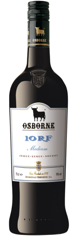 Grundlage für den kraftvollen Osborne Sherry 10RF Oloroso aus Andalusien sind Trauben aus den Rebsorten Palomino Fino und Pedro Ximénez.