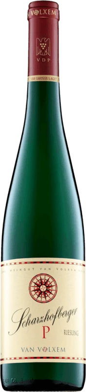 Der Pergentsknopp Wiltingen Scharzhofberger Riesling GG von Van Volxem von der Mosel offenbart im geschwenkten Glas eine brillante, hellgelbe Farbe. Beim Schwenken des Weinglases zeichnet sich dieser Weißwein durch eine faszinierende Leichtigkeit aus, die ihn schwungvoll im Glas tanzen lässt. In ein Weissweinglas eingegossen, offenbart dieser Weißwein aus der Alten Welt herrlich ausdrucksstarke Aromen nach Jasmin, Weinbergpfirsich, Linde und Stachelbeere, abgerundet von Hefezopf, grüner Paprika und sonnenwarmem Gestein.